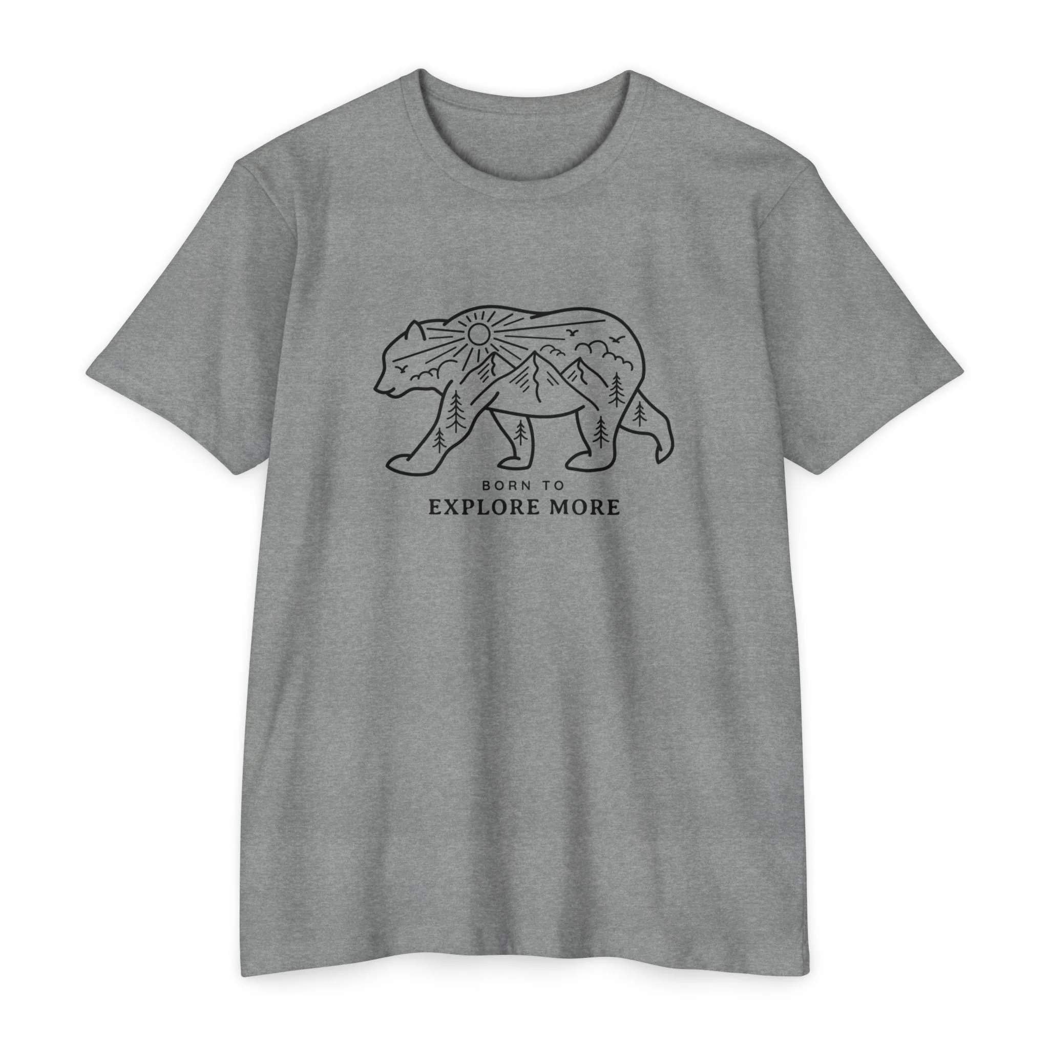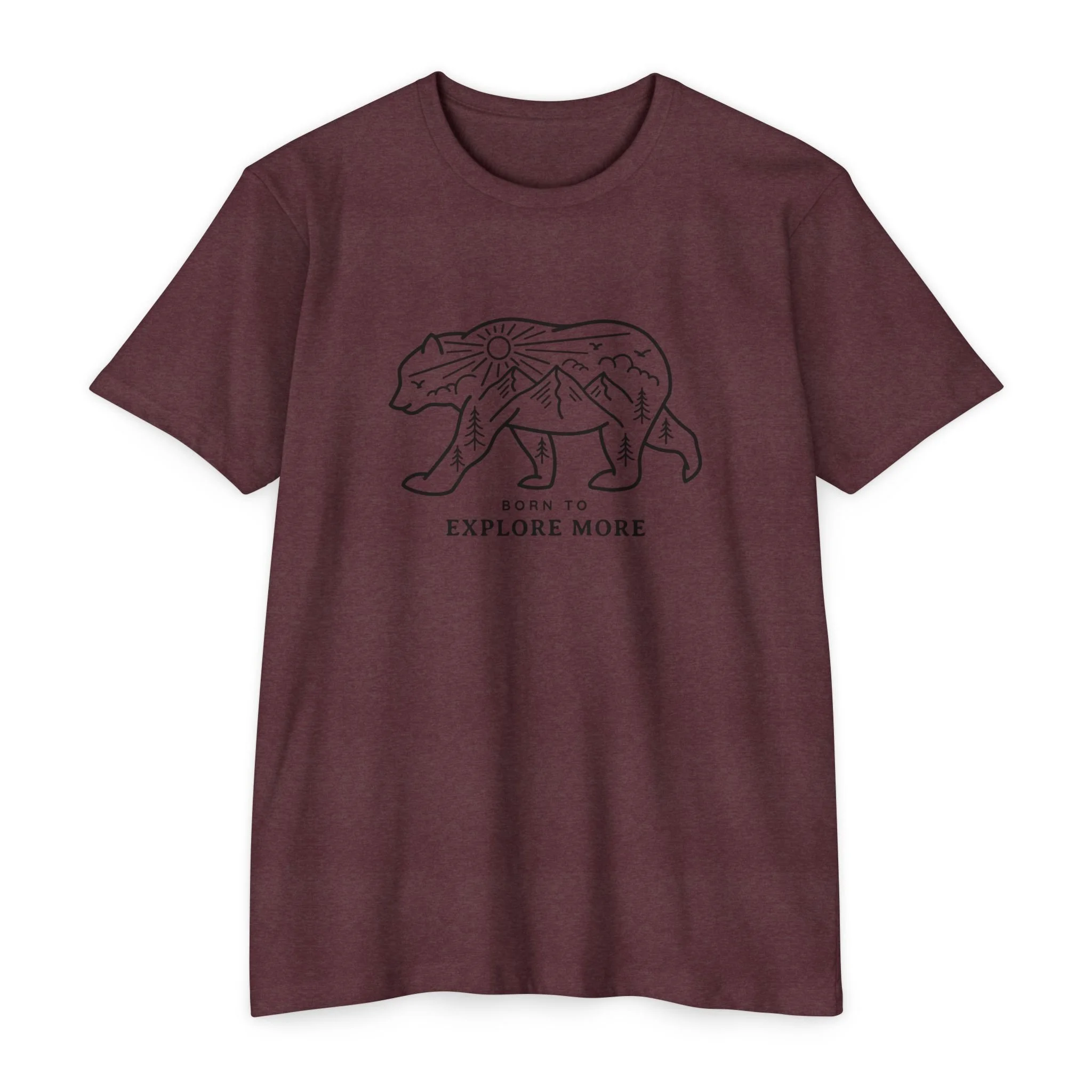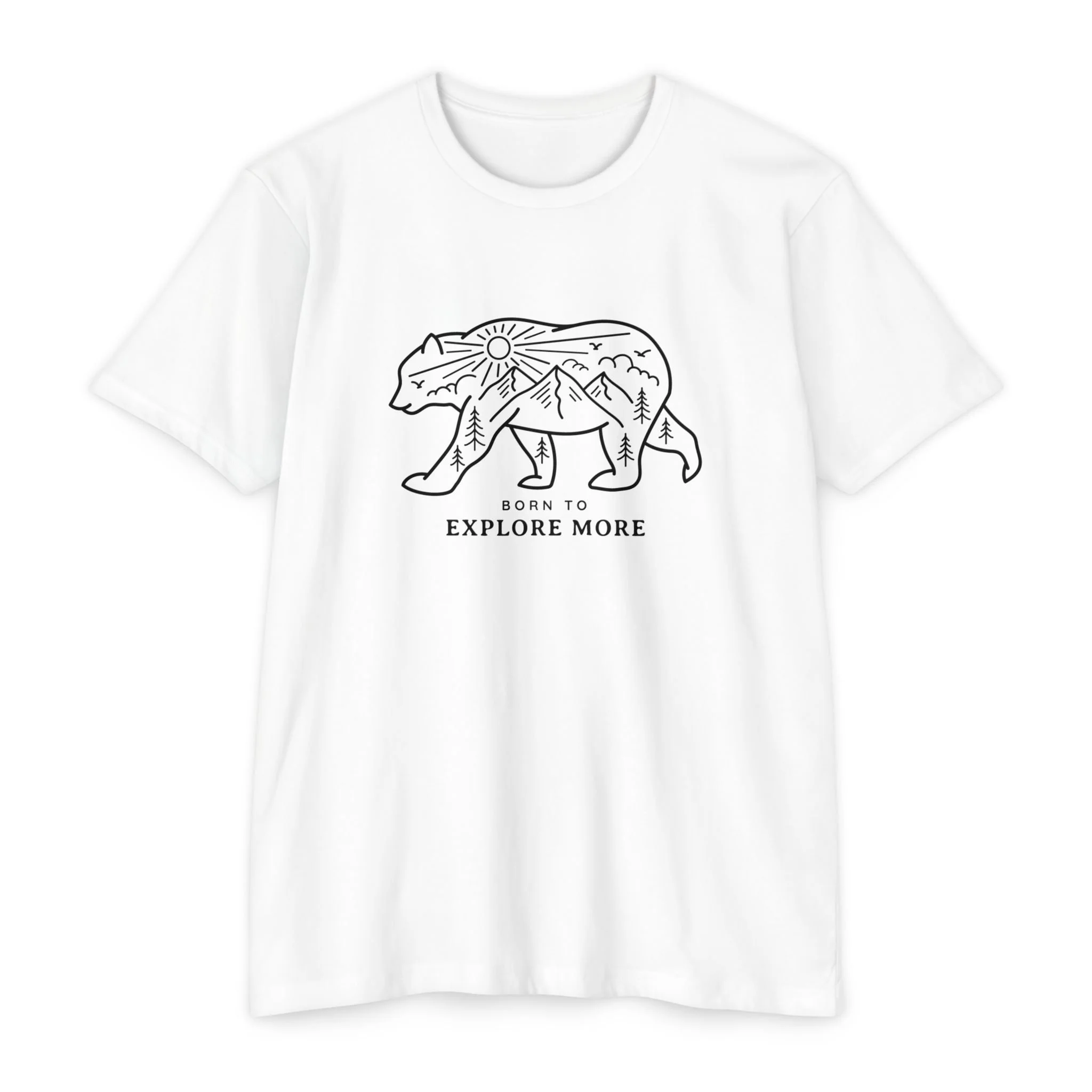 Lightweight and easygoing, this tee carries a quiet call to the wild. A simple line-art bear filled with mountains, sun, and a winding trail sits over the words “Born to Explore More,” inviting slow mornings, last-minute road trips, and easy hikes. The fabric drapes softly and breathes well on warm days, while a classic fit keeps movement effortless. Wear it layered under a flannel for campsite coffee or alone while mapping out the next route — it’s the kind of shirt that fades into adventures and keeps the focus on the view.