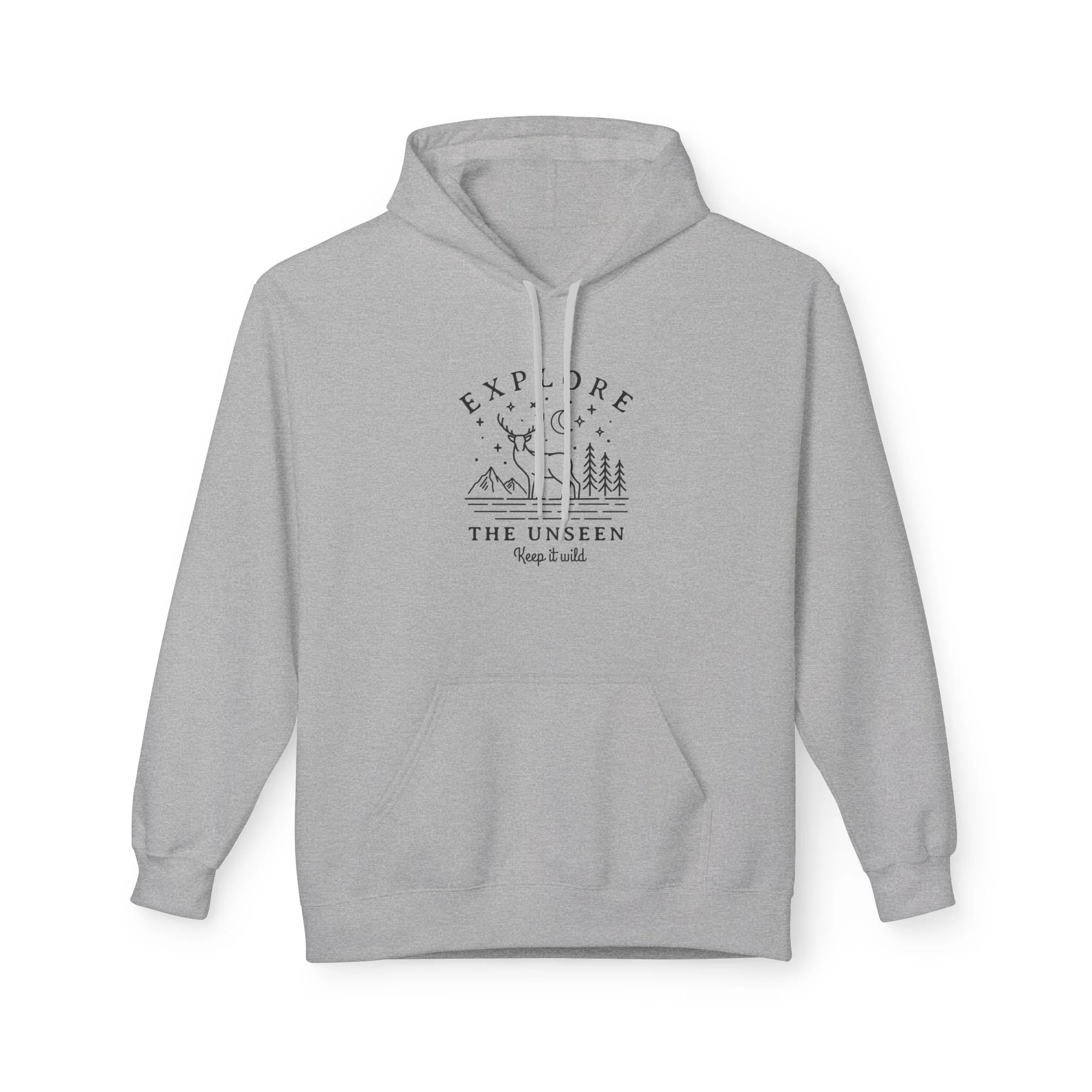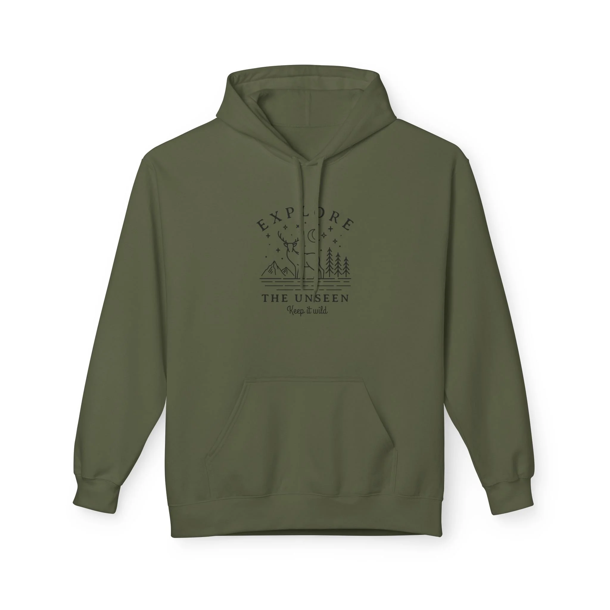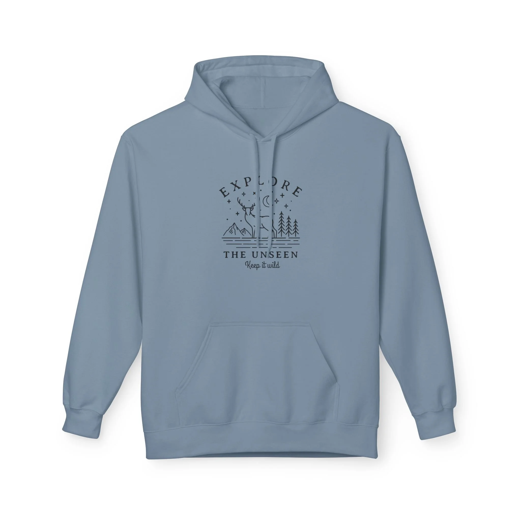 A soft, midweight hoodie drawn in clean, minimal lines—made for people who linger at trailheads and coffee shops with equal devotion. The delicate line-art front print reads “Explore” above a small cabin and pine motif, a quiet reminder to step outside. The dropped shoulders and relaxed cut let you layer a flannel or move freely on a weekend walk. The jersey-lined two-piece hood and roomy pouch pocket keep morning chills at bay. Thoughtfully produced with OEKO-TEX certification and fair-labor partnerships, this hoodie feels as responsible as it does familiar. Wear it to slow mornings, stargazing nights, or intentional road trips where comfort matters more than flash.